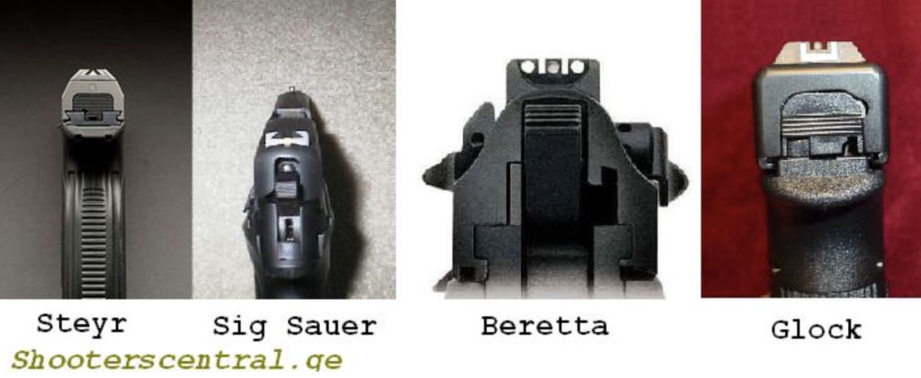 სანამ მიმოხილვას დავიწყებდი მინდა ავღნიშნო. რომ ის სამიზნე მოწყობილობები, რომლებითაც აღჭურვილია ძველი იარაღები (სტანდარტული საარმიო კოლტი 1911, მაკაროვი, ტტ) არანაირად არ აკმაყოფილებს მოთხოვნებს, რომლებსაც აყენებს თანამედროვე რეალიები. მასად აიუბი თავის წიგნში Combat Handgunnery წერს, რომ საბრძოლო/თავდაცვის იარაღზე სამიზნეები უნდა იყოს დიდი, დაკუთხული, ადვილად შესამჩნევი სტრესულ პირობებში, საიმედო და გამძლე. აღნიშნული ძველი გამოშვების იარაღების სამიზნე მოწყობილობები არ აკმაყოფილებენ ამ მოთხოვნილებებს. წვრილი კორა და დაბალი პატარა თარაზო ცუდათ ჩანს ან საერთოდ არ ჩანს დაბნელების პირობებში, წვრილი კორა ადვიალდ ზიანდება (იღუნება) იარაღის დავარდნისას. უმეტესობა მომხმარებლების, რომლებიც ირჩევენ ძველ იარაღს პირველ რიგში ცვლიან ძველი ტიპის სამიზნე მოწყობილობებს ახლებით, თუ აპირებენ ამ იარაღების გამოყენებას მათი პირდაპირი დანიშნულებით და არა როგორც კოლექციის საგანს. ასევე მიუხედავად იმისა, რომ დღეს უმრაველსობა საბრძოლო და თავდაცვის პისტოლეტების უკვე ქარხნიდან გამოდის სავსებით ადეკვატური სამიზნე მოწყობილობებით, მაინც შეიარაღებული პროფესიონალები აყენებენ მათზე ისეთ მოწყობილობებს, რომლებიც 100% პასუხობენ მათ სპეციფიურ მოთხოვნებს. ქარხნული თანამდეროვე სამიზნეების უმეტესობა წარმოადგენს კლასიკურ რკინის სამიზნე მოწყობილობებს, რომლებსაც დამატებით გააჩნიად თეთრი ზოლები/წერტილები ადვილი დაზმინებისათვის. მაგრამ მათი უმეტესობა არის მარტივი და იაფი ხოლო ზოგიერთ შემთხვევაში აპრიორი არასკამრისად გამძლე, როგორიცაა მაგალითად გლოკის სტანდარტული პლასტმასის სამიზნე მოწყობილობები. ზოგი კომპანია თავიდანვე აყენებს კარგი მწარმოებლის საბრძოლო სამიზნე მოწყობილობებს, მაგრამ ეს ცხადია ზრდის იარაღის საბოლოო ფასს.