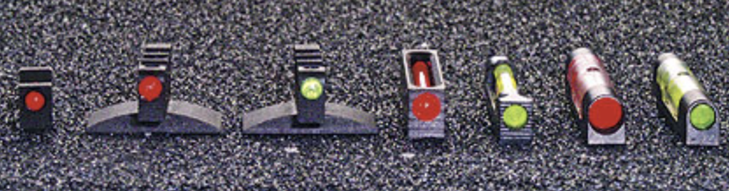 სურათზე ჩანს სტანდარტული სამიზნე მოწყობილობების ფორმების და შესრულების მრავალფეროვნება სხვადასვხა იარაღის მწარმოებლებს შორის.