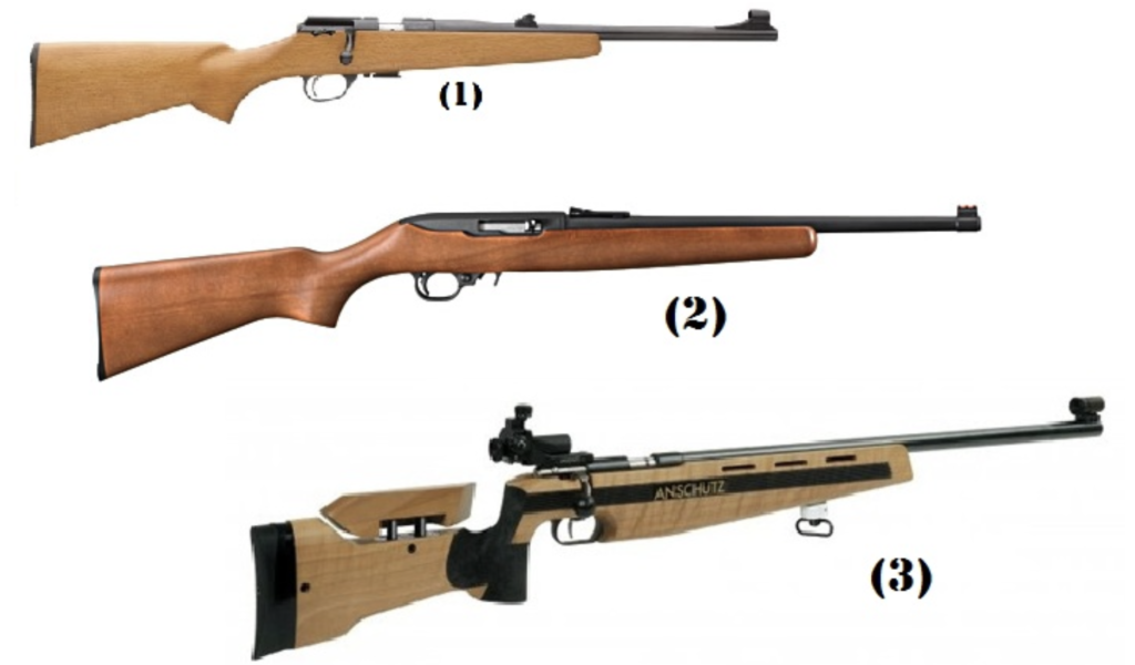 პირობითად მცირეკალიბრიანი კარაბინები შეიძლება დაიყოს სამ ძირითად ტიპად ან სახეობად. “საბავშვო” მოდელები(1), ყველაზე იაფი მსუბუქი როგორც წესი ცალმუხტიანი, მოკლე კონდახით, სტანდარტული(2) და სპორტული(“მატჩ”) ტიპის(3)