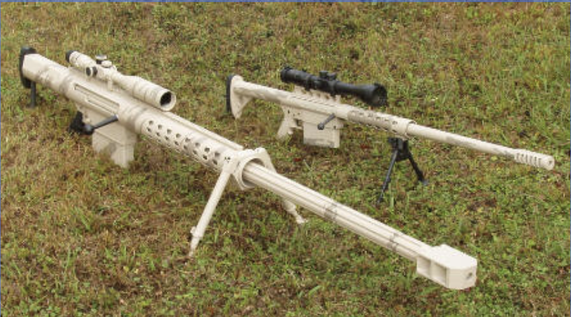 სურათზე Anzio 20mm Rifle .50 კალიბრის Barrett M82-ისგვერდით. სურათიმ წარმოებლის საიტიდან