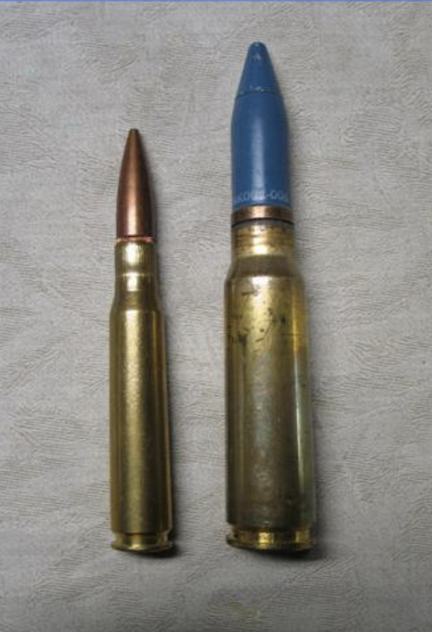 .50 კალიბრის ვაზნებისგან ამ ამუნიციის მთავარი განსხვავება ის არის, რომ აქ „ტყვიის“ როლში გამოდის სრულფასოვანი ჭურვი, რომელიც შედგება ფეთქებადი საბრძოლო ბირთვისგან და აღჭურვილია ამფეთქებლით. საბრძოლო ნაწილის მქონე .50 BMG კალიბრის ვაზნებიც არსებობს, თუმცა აშკარაა, რომ 20 მმ-იანი ჭურვი გაცილებით უფრო მძლავრია — უბრალოდ იმიტომ, რომ ის ბევრად მეტ ასაფეთქებელ ნივთიერებას იტევს.