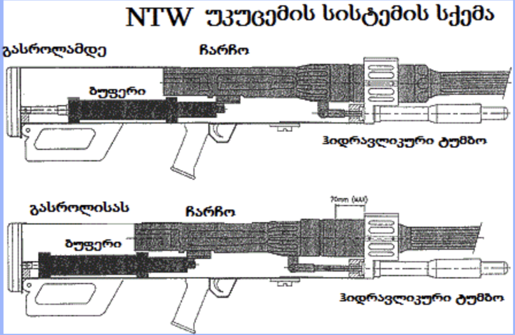 უკუცემის დროს არც ერთი ელემენტი, რომელთანაც მსროლელი უშუალო კონტაქტშია (კონდახი, სახელური, რესივერი, ოპტიკა, სადგარი), არ მოძრაობს. მოძრავი ნაწილების სვლის სიგრძე დაახლოებით 100 მმ-ს შეადგენს.